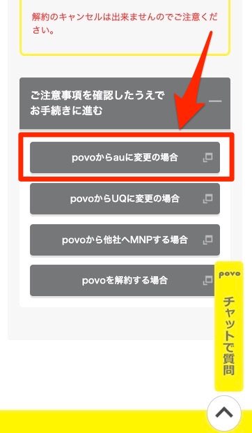 povo2.0からauに戻るときの注意点