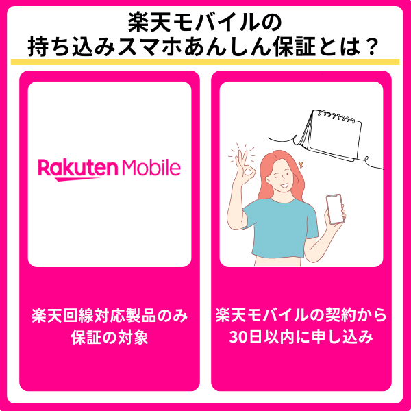 - 楽天モバイル加入時に所有しているスマホが保証対象となる