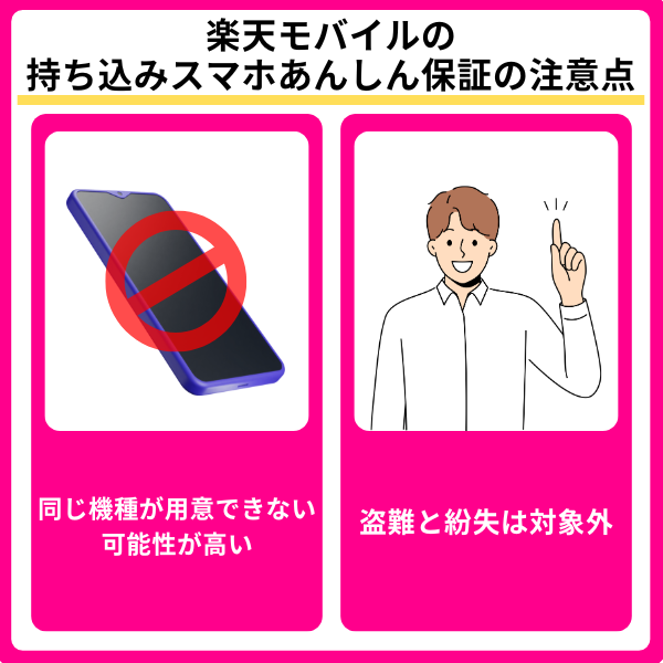楽天モバイルの持ち込みスマホあんしん保証の注意点を2つ紹介します。