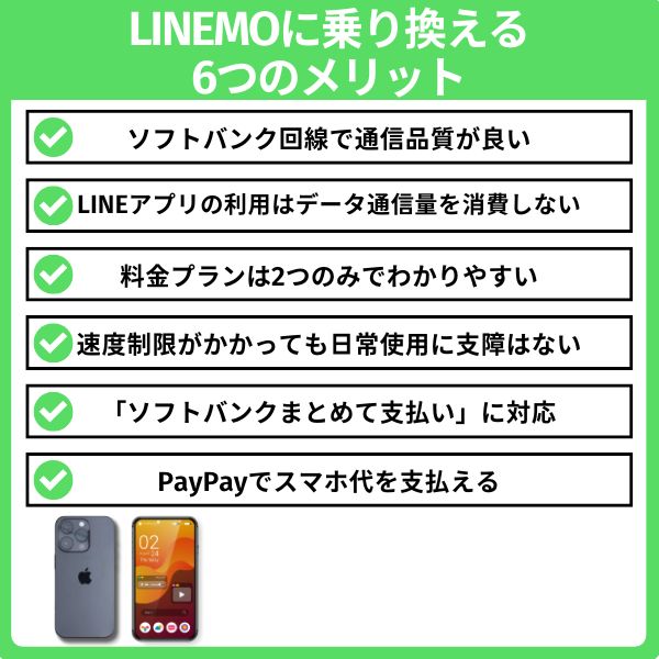 LINEMOへの乗り換えるのに、主な6つのメリットを詳しく解説します。