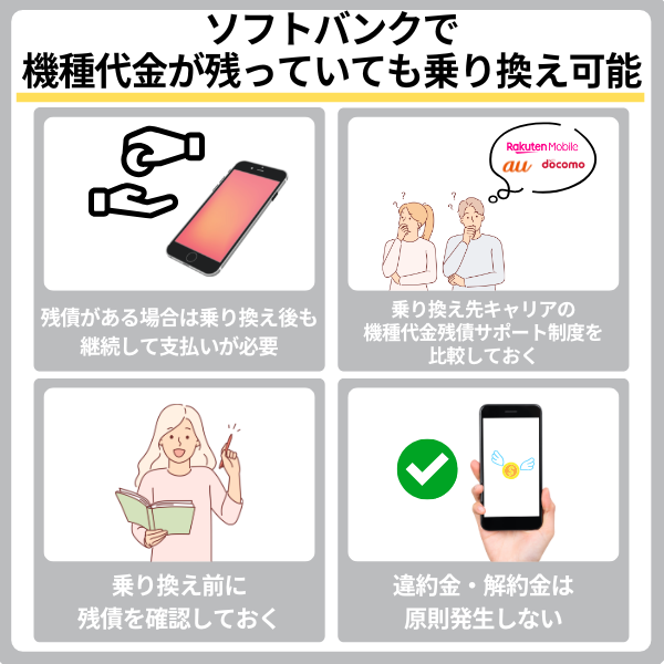機種代金が残っていても、ソフトバンクから他社への乗り換えは可能です。