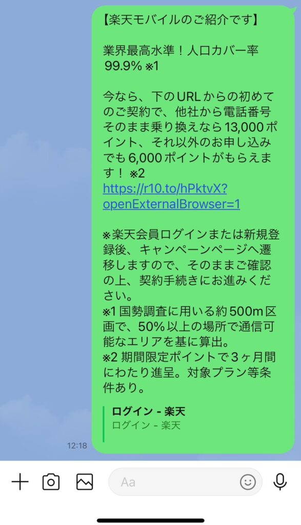 送られてきたURLから手続きをしないと、楽天モバイル紹介キャンペーンの特典は受け取れないため注意が必要です。