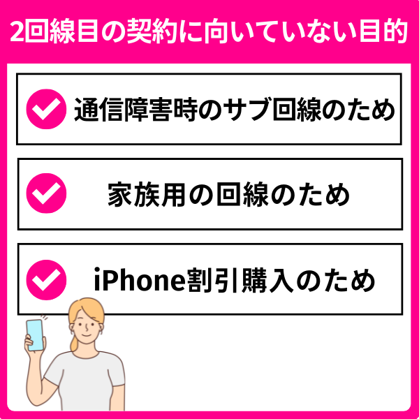 一方で、以下のような目的なら、楽天モバイルの2回線目の契約はおすすめできません。