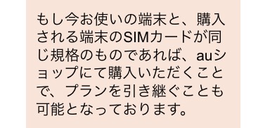 後述しますが、例えばauだと、機種変更前後の機種のSIMサイズが違う際は、契約し直しとなるため、プラン変更が必須とのことでした。