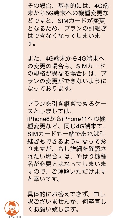旧プランのままで機種変更できる例として「iPhone 8からiPhone 11」を挙げてくださり、同じ4G端末かつSIMカードサイズが同じことが条件としています。