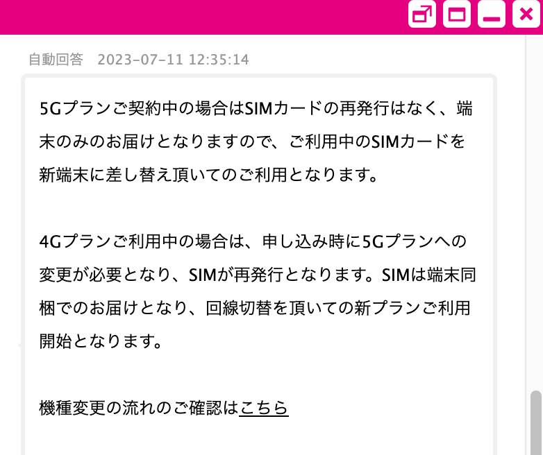 4Gや5G間の変更がなくても、SIMサイズの変更が必要だとプラン変更が必須になることがあります。