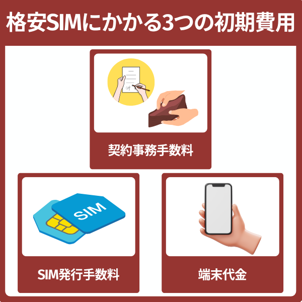 格安SIMの契約時は3,300円(税込)の事務手数料のほか、端末代金やSIM発行手数料が必要になるケースが多く、初期費用が高くなりがち