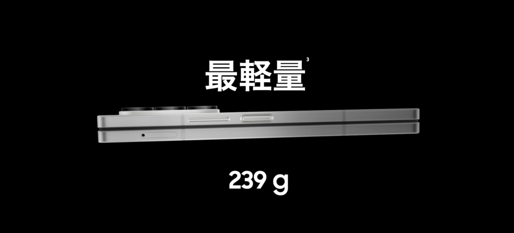 薄型化と軽量化により、折りたたみスマホ特有の「厚くて重い」といったデメリットが大幅に改善されました。