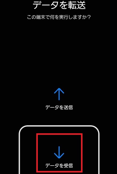 100%まで完了すると、転送するデータを選択する画面が表示されます。