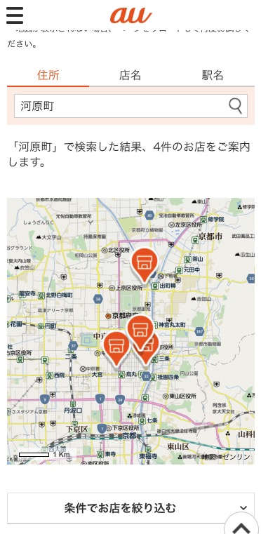 auショップ検索で近くの店舗を調べます。