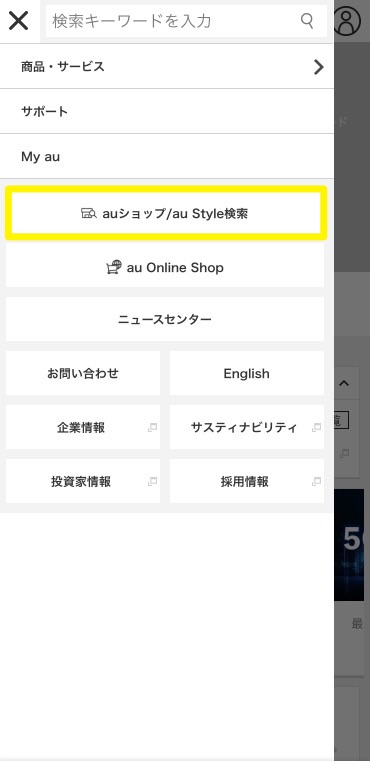 - STEP1 「auショップ/au style検索」から進む