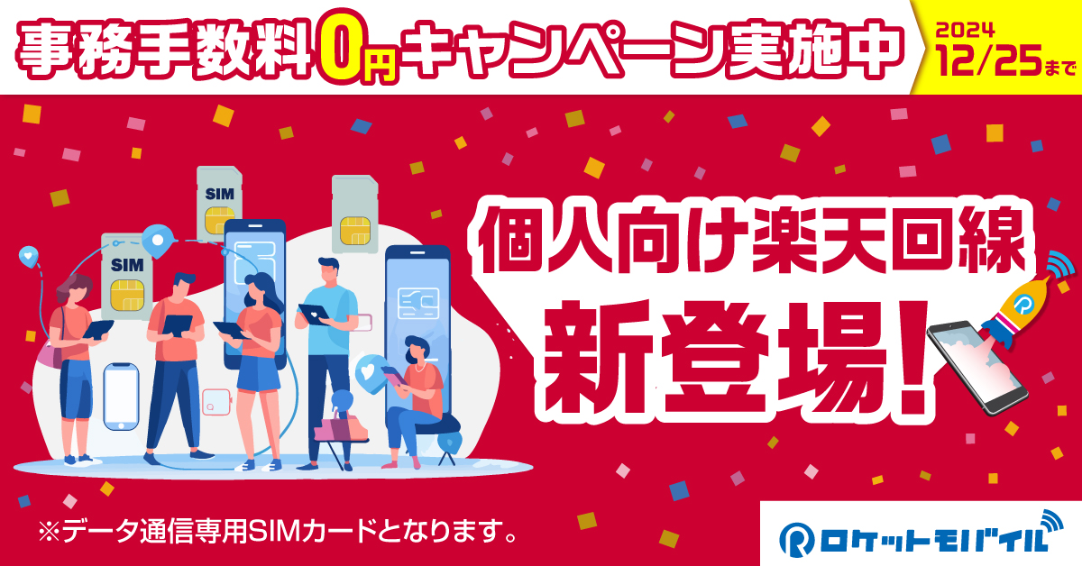 2024年9月13日(金)17時より個人のお客様からRプラン(楽天回線)の申し込みを受け付けることと、2024年12月25日まで新規契約事務手数料無料のキャンペーン(以下、本キャンペーン)を実施することをお知らせいたします。