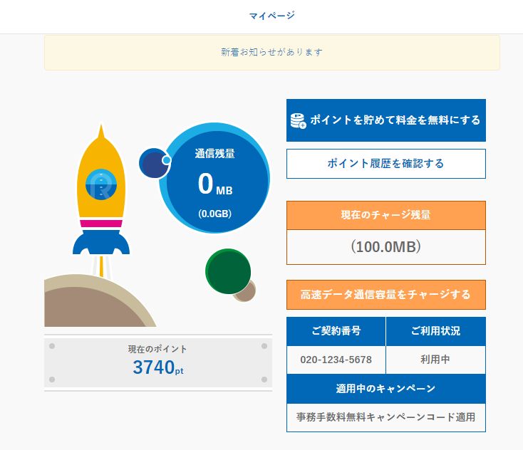 ⇒「プランごとにあらかじめ付与されるデータ通信容量」が先に消化され、次に「チャージしたデータ通信容量」が消化されます。