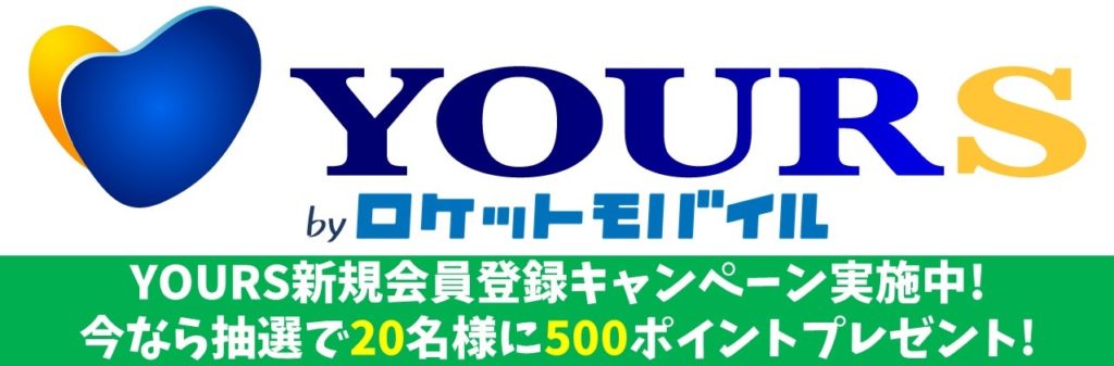 2020年4月28日より、ロケットモバイルをご契約中のメールアドレスでYOURS(http://yourss.jp/)に新規会員登録された方に、抽選で20名様に500YOURSポイントをプレゼントさせていただくキャンペーンを開始致します。