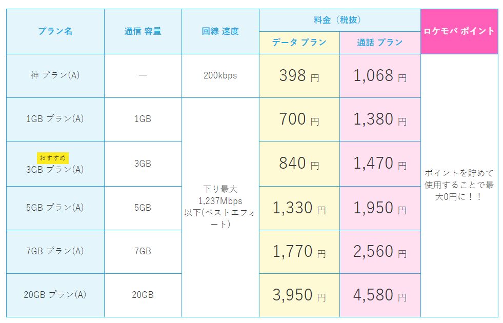• パケット繰り越しに対応しています。(ただし、神プラン(A)は非対応です。